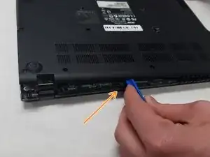 Gently pry the back plate off using the plastic opening tool, leveraging the groove along the device's hinge.