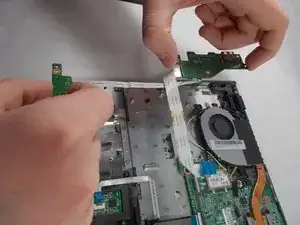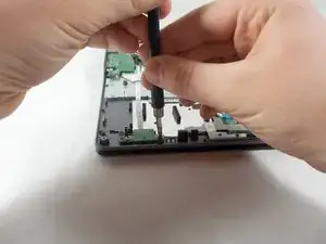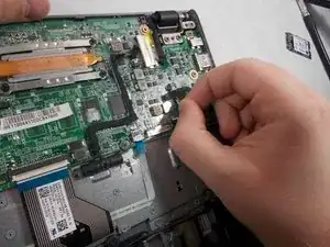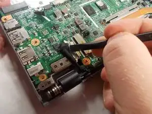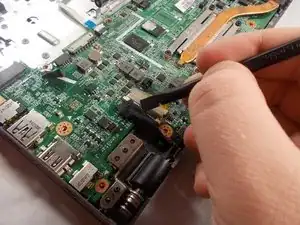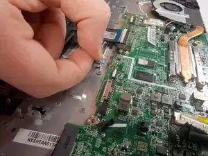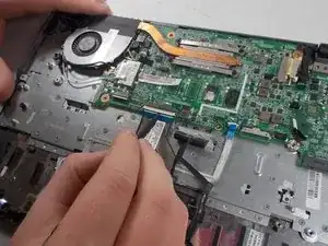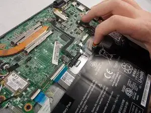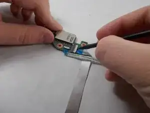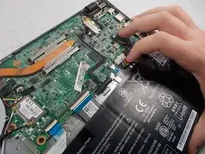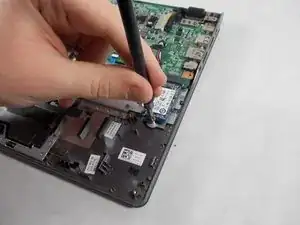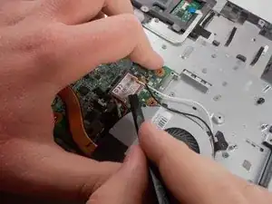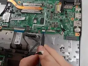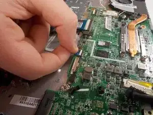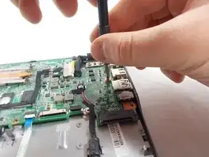 Flick the spudger up to disconnect the cable from the motherboard.