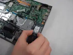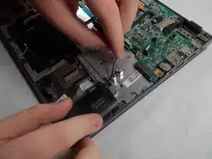 Remove the single 3.0mm screw securing the solid state drive using a Phillips #1 screwdriver.