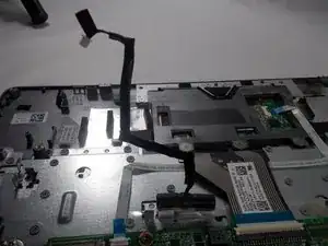 Grab the red and black cable near the display cables, this is the cable to the other two pin connector.