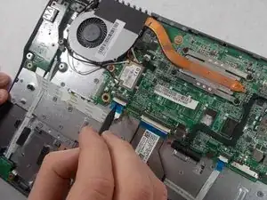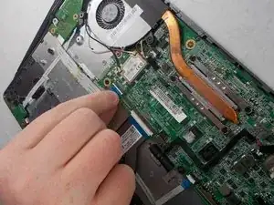 Pull on the tab to disconnect the ribbon cable from the motherboard.