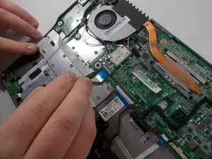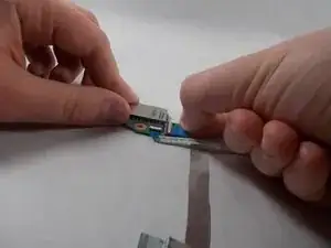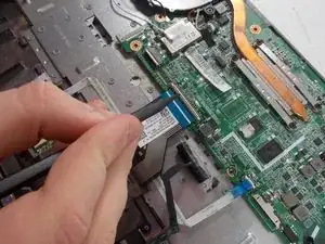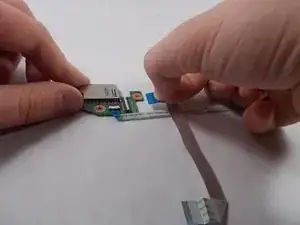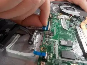 Pull on the blue tab of the ribbon cable to remove the ribbon cable.