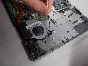 Lift up the CPU fan to ensure that no wires are tangled. If the black and white wires are tangles please repeat step 5.