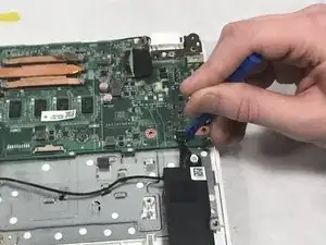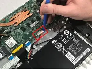 Using a plastic opening tool, disconnect the wires connecting the battery to the motherboard.