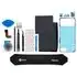 Use the pull tabs to remove the liners covering the front camera cutout, the rear camera pad, the back of the screen, and the perimeter adhesive.