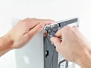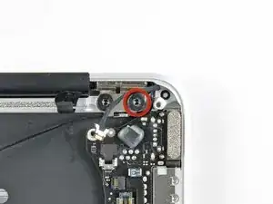 While holding the Air steady, remove the remaining 4.9 mm T8 Torx screw from the lower display bracket.