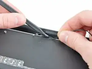 Gently push the tip of a spudger under the black plastic flap stuck to the display data cable lock to make the lock pop upward and away from the socket.