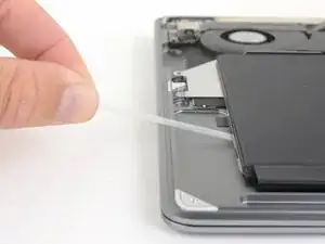 Use a pair of tweezers to lift up the black adhesive pull tab on the side of the battery, enough so you can grab it with your fingers.