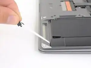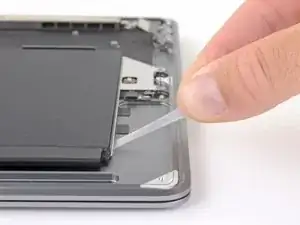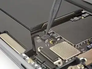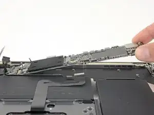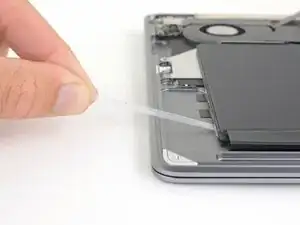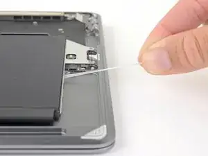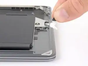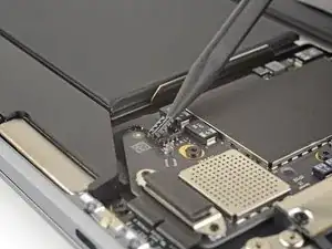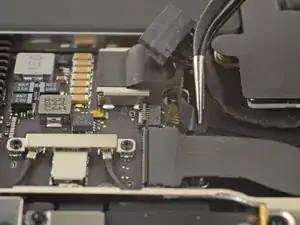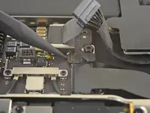 Use a spudger to slide the battery connector parallel to the logic board and out of its socket on the logic board.