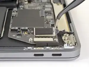 Use a T3 Torx driver to remove the two 1.3 mm screws securing the USB-C port connector bracket.