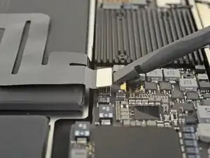 Use the flat end of a spudger to pry the USB-C cable connector up and out of its socket on the logic board.