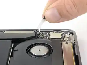 Use the tip of a spudger to lift up the locking flap on the fan cable's ZIF connector.