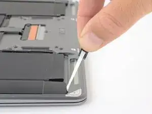 Carefully slide a spudger or opening pick underneath the speaker to separate the adhesive.
