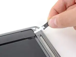 Carefully slide a spudger or opening pick underneath the speaker to separate the adhesive.