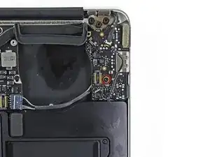 Use the tip of a spudger to carefully flip up the retaining flap on the fan cable ZIF socket.