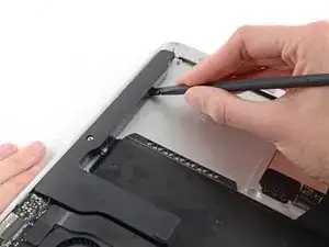 Lift the battery from its edge nearest the logic board and remove it from the upper case.