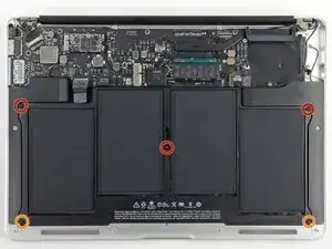 Remove the following five screws securing the battery to the upper case: