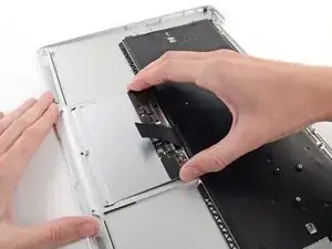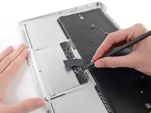 Use the tip of a spudger or your fingernail to flip up the retaining flap on the trackpad ribbon cable ZIF socket.