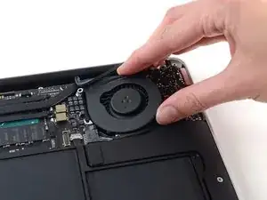 Lift the fan from the I/O board side and pull it free from the upper case.