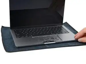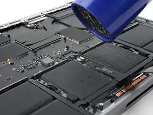 Fully shut down your MacBook, close the lid, and flip it over. Keep the lid closed until you've physically disconnected the battery.