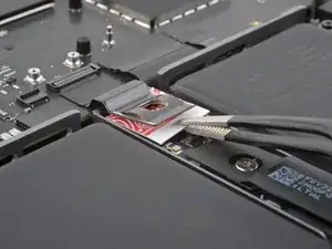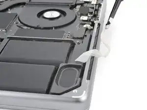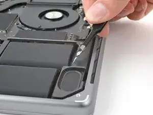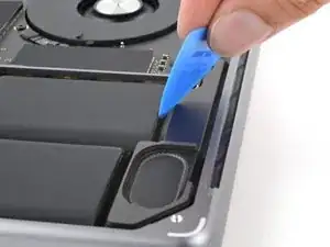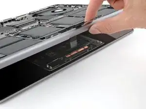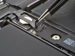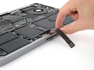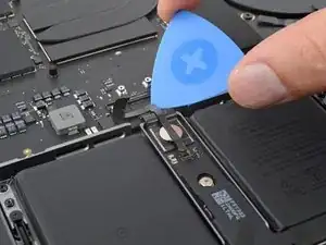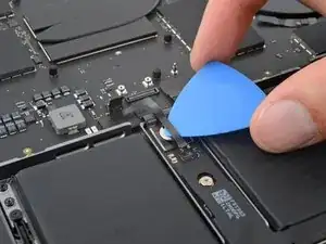 Use the flat end of your spudger to pry up and disconnect the trackpad press connector from the logic board.