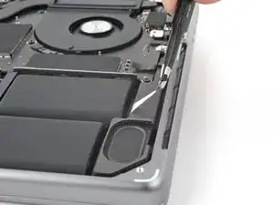 Slide your spudger toward the back of the cutout and pry up to release the two right-side clips.