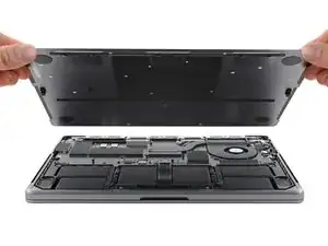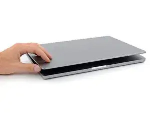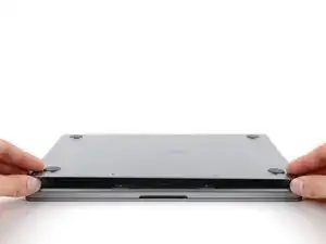 Lay it down and align the sliding clips with the back edge of the MacBook. Press down on the lower case and slide it toward the back edge to engage the clips.