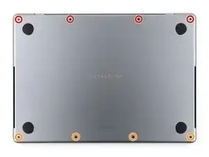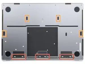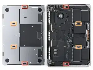 Use a P5 pentalobe driver to remove the eight screws securing the lower case: