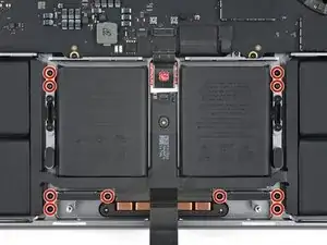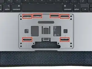 Use your T5 Torx driver to remove the ten 5.8 mm-long 5IP Torx Plus screws securing the trackpad.