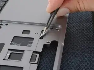 Use blunt nose tweezers to grip the pull tab and separate it from the edge of the battery cell.