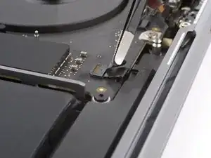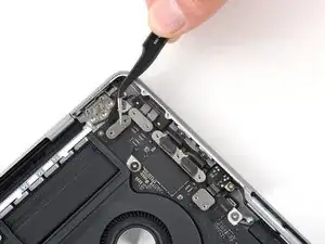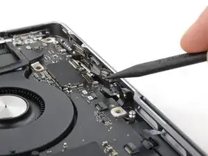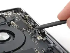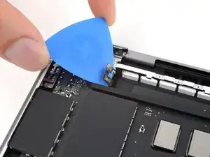 Use the point of your spudger to pry up and disconnect the lid angle sensor press connector.