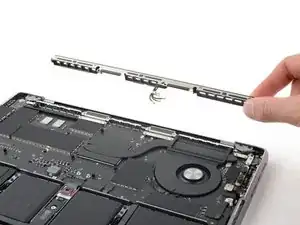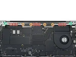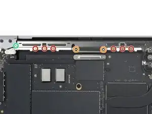 Use a P2 pentalobe driver to remove the nine 1.6 mm-long screws securing the antenna bar.