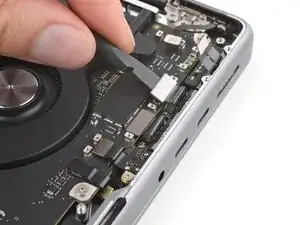 Use the flat end of your spudger to pry up and disconnect the two USB-C port press connectors.