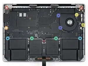 Fully shut down your MacBook, close the lid, and flip it over. Keep the lid closed until you've physically disconnected the battery.