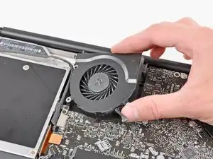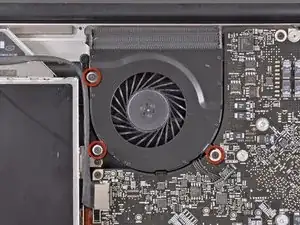 Remove the three 3.1 mm Phillips screws securing the left fan to the logic board.