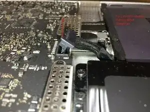 Use the flat end of a spudger to pry the trackpad connector up and out of its socket on the logic board.