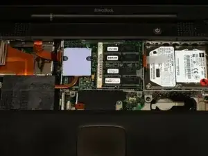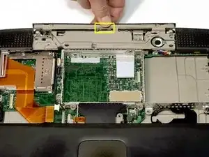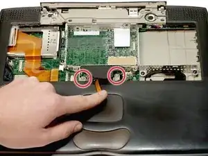 Remove the upper casing. Note that there are two tabs on the laptop's front that often cause the upper case to stick.