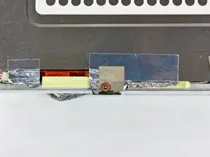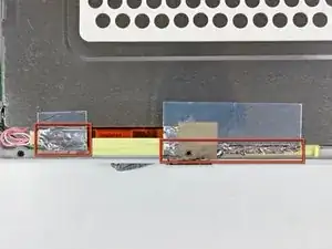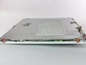 Remove the single screw inserted through the piece of EMI tape near the bottom edge of the display.