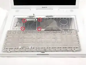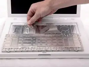 Pull the keyboard cable up from the logic board, holding the cable as close to the connector as possible.
