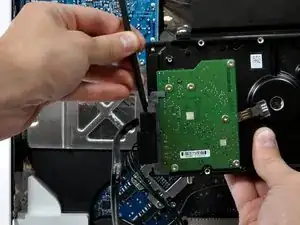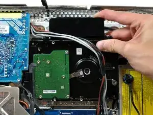 Lift the hard drive off its lower pins and pull it out of the rear case, minding the power supply cables that may get caught.
