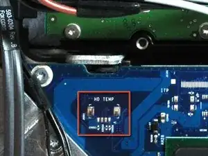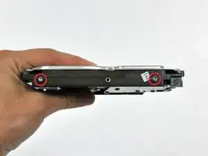 Remove the two 4.8 mm T6 Torx screws securing the display data cable to the logic board.