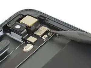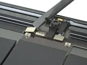 Insert an opening tool underneath the logic board arm near the rear camera.