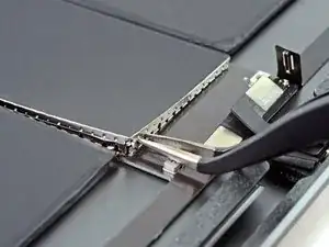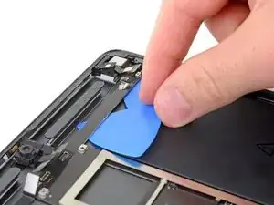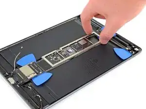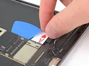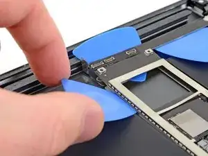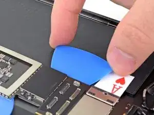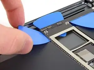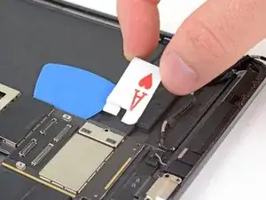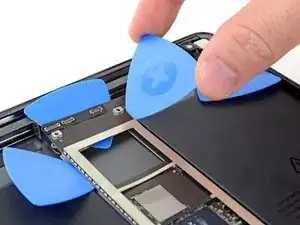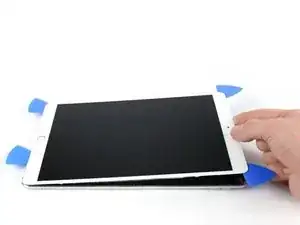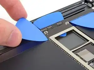 Leave the opening pick inserted near the top left corner of the iPad to prevent the adhesive from re-sealing.