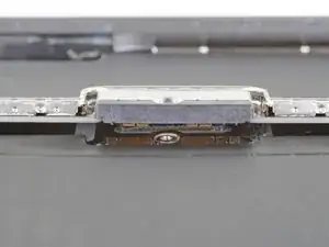 Lift the display assembly from its top edge and carefully slide it up (towards the front-facing camera and headphone jack), until the screw that secures the battery power connector is revealed at the bottom.