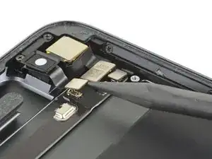 Use the flat end of a spudger to disconnect the headphone jack cable by lifting straight up on the press connector.