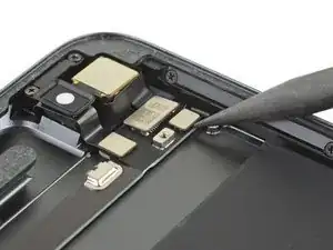 Use a spudger to push the upper component bracket towards the upper edge and off of the clips located near the rear camera.
