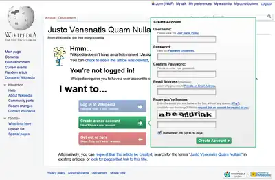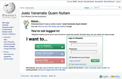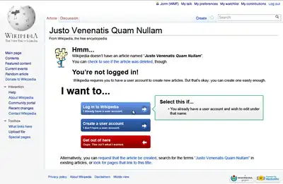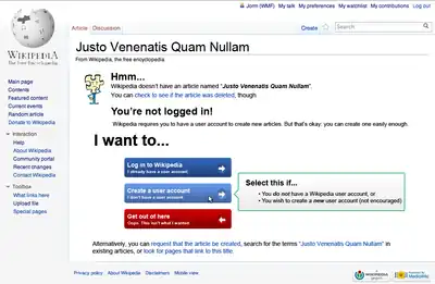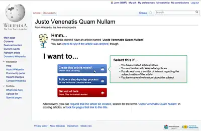 - Redlink: They follow a redlink, which leads them directly to the edit page where they can create the article. Again, they have no introduction to the Wikipedia guidelines for new articles.