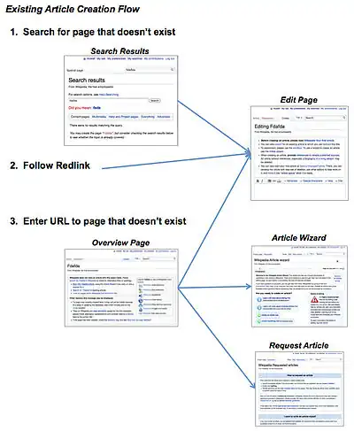 This document describes the behavior of a modified workflow for page creation for Wikipedia. This document is a work in progress. Feedback is welcome on the talk page.