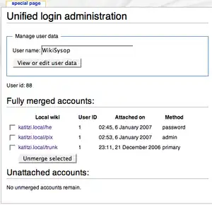 CentralAuth allows merging several existing separate account systems into one global account system.