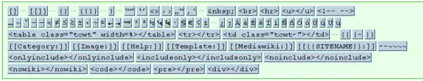 - MediaWiki:Edittools (Wikipedia) - Only for users with JavaScript turned off or unsupported (which disables the WikiEditor extension too), therefore not really necessary or useful either. It only shows symbols/characters as simple text below the editor window, which can then be copy-pasted and thus be of some help to editors. Apparently, it does not get activated in English Wikipedia for disabled JavaScript.